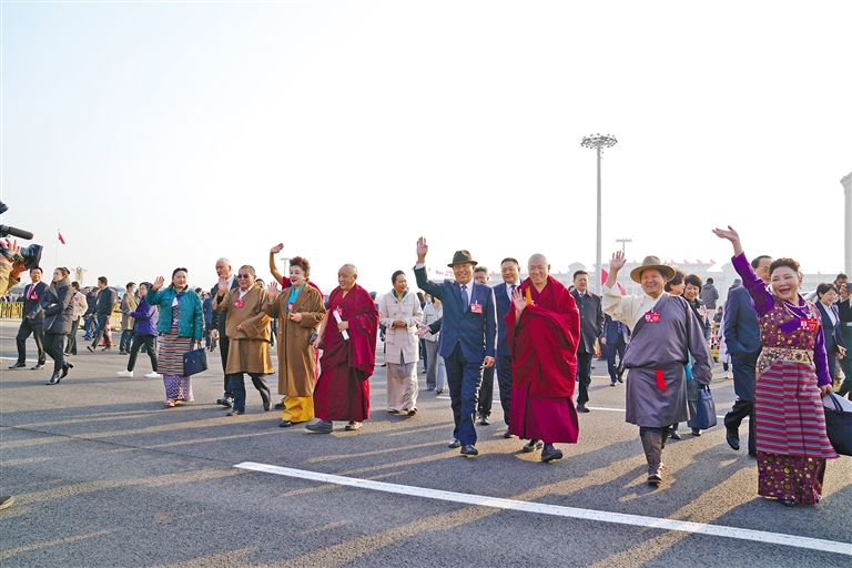 住藏全國政協(xié)委員在人民大會堂前合影。