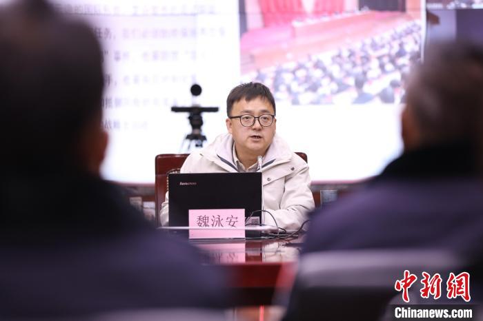 圖為四川大學(xué)馬克思主義學(xué)院魏泳安副教授通過視頻會(huì)議系統(tǒng)向阿里邊境管理支隊(duì)全體民警講授理論知識(shí)。 胡俊浩 攝