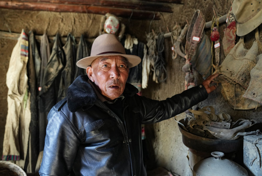 雖然背有點(diǎn)駝,聽(tīng)力也差,79歲的朗杰老人仍堅(jiān)持戴著禮帽,衣著得體,精神矍鑠。講起從前的事情,老人思路很清晰,表達(dá)也有力。