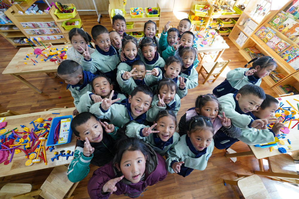 2024年3月14日,嘎東社區(qū)的孩子在幼兒園玩耍。新華社記者 晉美多吉 攝