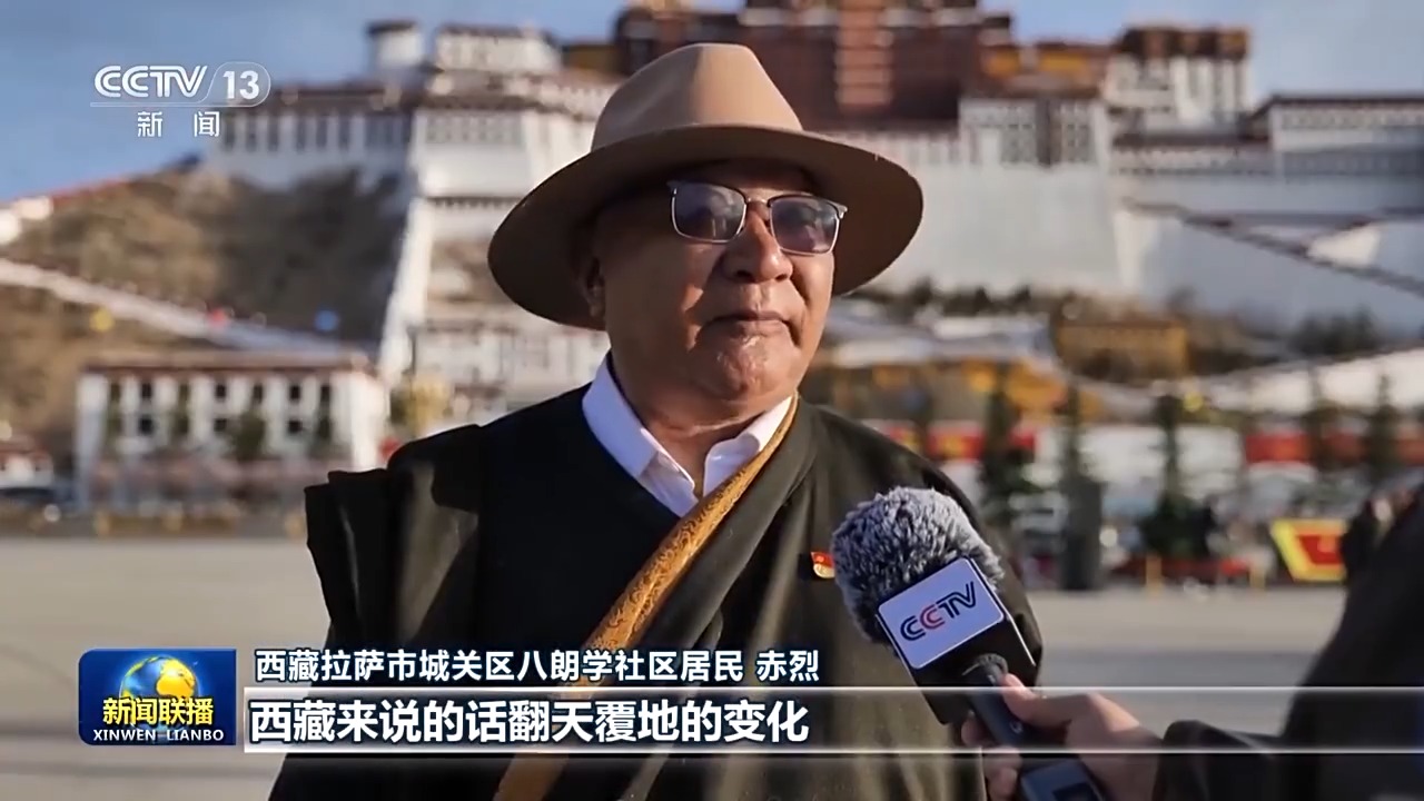 西藏拉薩市城關(guān)區(qū)八朗學社區(qū)居民 赤烈:西藏來說的話翻天覆地的變化,國家有那么好的政策,我們現(xiàn)在群眾都很滿意的。