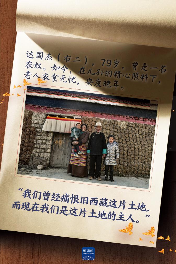“民主改革后我才真正睡了一個(gè)踏實(shí)覺,不再?zèng)]日沒(méi)夜地支差役,也不用挨農(nóng)奴主的皮鞭了?!蹦悄?,達(dá)國(guó)杰一家分得了50畝地、1頭牛、1匹馬和15只羊。“有了自己的土地,干再累的活都是開心的。那一年我第一次吃糌粑可以吃到撐,真正體會(huì)到了做人的滋味?!?/p>
