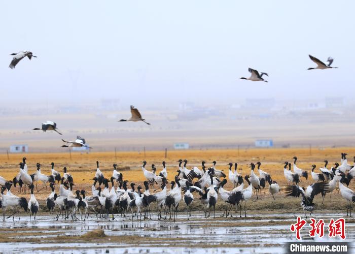 通常,黑頸鶴“返航”需飛行3-5天,當(dāng)雄縣阿熱濕地是大部分北上的黑頸鶴往返遷徙的中轉(zhuǎn)站。作為拉薩市級(jí)濕地自然保護(hù)區(qū)中面積最大、海拔最高的濕地,阿熱濕地因其特殊的生態(tài)環(huán)境孕育著眾多珍稀水禽鳥獸和濕地植物,黑頸鶴們?cè)谶@里中轉(zhuǎn)休息,養(yǎng)精蓄銳后再次踏上遷徙之途。