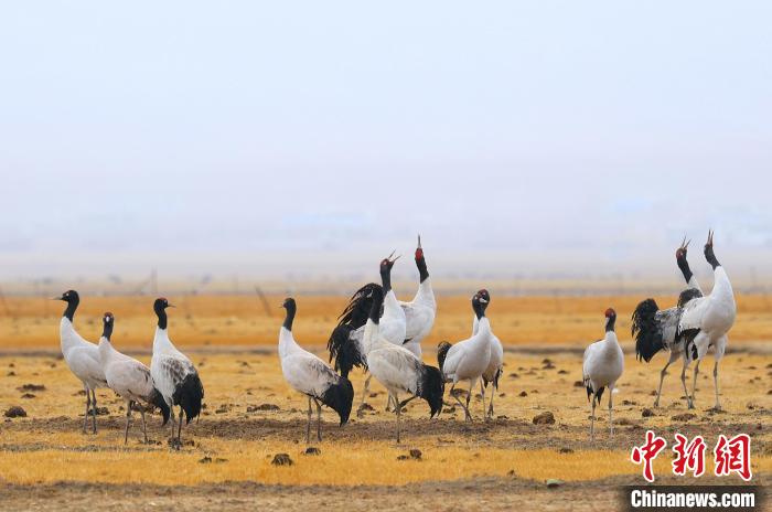 圖為拉薩市當(dāng)雄縣阿熱濕地里的黑頸鶴。索朗多杰 攝