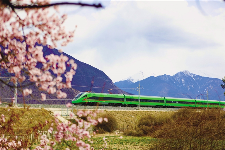 自2021年拉林鐵路開通以來,“搭乘復興號去看桃花”已成為更多游客的選擇。作為連接“日光城”拉薩和“雪域江南”林芝的“新天路”,拉林鐵路串起了西藏東南地區(qū)的“精華”風景,乘坐拉林鐵路列車,不僅能體驗到世界最高海拔運行的動車速度,還可以透過車窗盡情欣賞雅魯藏布江兩岸壯觀的桃花林,飽覽雪域高原的壯麗美景。