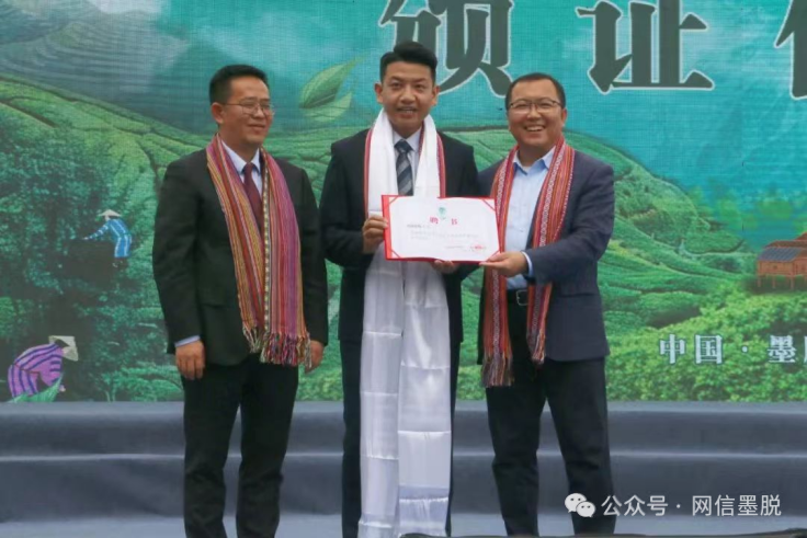 伴隨著春風(fēng)中浸染的裊裊茶香,開幕式上的一段視頻吸引了觀眾們的注意,視頻中丹臻群佩在央視主持人大賽的舞臺(tái)上向全國(guó)人民展示了墨脫通車十年以來(lái)的壯美巨變,講述了茶葉為墨脫人民的生活帶來(lái)的嶄新面貌,他的傾情推介帶領(lǐng)著觀眾再次感受了墨脫的極致美景,體會(huì)了新時(shí)代墨脫人民欣欣向榮的美好生活。在現(xiàn)場(chǎng),林芝市委常委、墨脫縣委書記符永波為丹臻群佩頒發(fā)“中國(guó)·墨脫文化旅游形象大使”證書。隨后,符永波宣布,2024年墨脫縣首屆茶文化旅游季正式開幕!