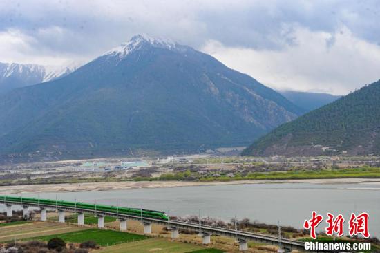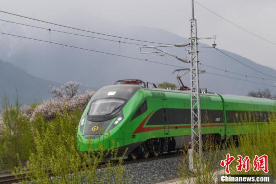 據(jù)悉,拉林鐵路是一條連接西藏拉薩市與林芝市的國鐵Ⅰ級單線電氣化鐵路,全長435公里,設(shè)計時速160公里,于2021年6月25日開通運營。圖為穿梭在桃花林中的拉林鐵路高原復(fù)興號。