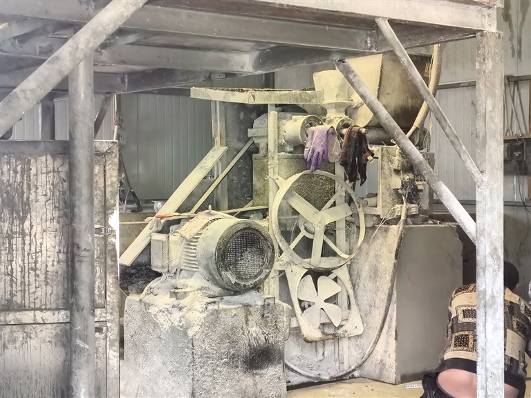 廠房?jī)?nèi)的粉料攪拌機(jī)。旦增玉珍
