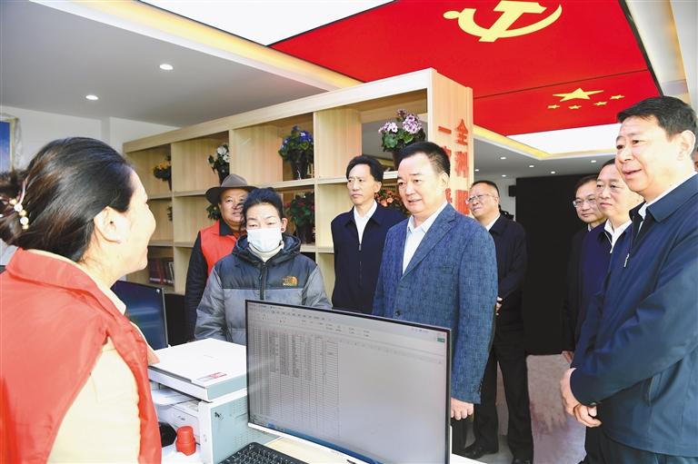 在拉薩市城關(guān)區(qū)吉日街道河壩林社區(qū)便民服務(wù)中心,王君正與工作人員面對面交流,深入了解社區(qū)服務(wù)群眾、推進基層治理等工作。指出,“上面千條線,下面一根針”,要切實把基層的負擔(dān)減下來,關(guān)心愛護基層干部,讓基層有更多時間和精力辦實事抓落實。
