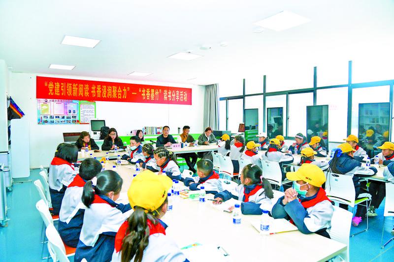 圖為拉薩市墨竹工卡縣委宣傳部在該縣南京實(shí)驗(yàn)小學(xué)舉辦“黨建引領(lǐng)新閱讀 書香浸潤聚合力”——“書香墨竹”讀書分享活動。記者 格桑倫珠 攝