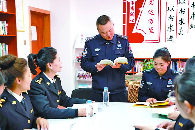圖為亞東邊檢站和亞東海關(guān)聯(lián)合開展“書香邊境”主題讀書分享活動。記者 王莉 通訊員 許鵬飛 李錦輝 攝