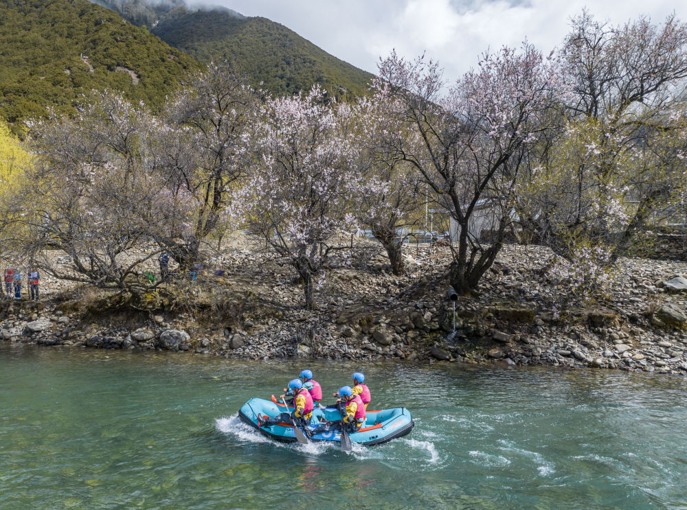 成都伽斯特健身俱樂部在四人漂流艇拉力賽中(4月21日攝,無人機照片)。新華社記者 孫非 攝