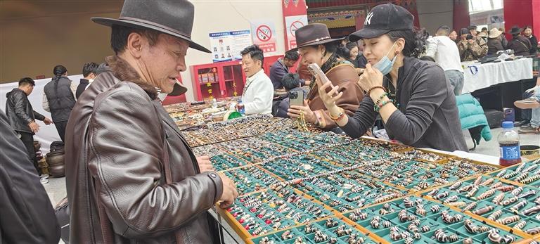 記者在展廳看到,參展商家攤位分布有序,前來購買各種珠寶、藝術(shù)品的顧客絡(luò)繹不絕?;顒?dòng)現(xiàn)場(chǎng),匯聚了來自全國各地的珠寶商、藝術(shù)家、收藏家及投資者。博覽會(huì)期間,主辦方舉辦了珠寶、藝術(shù)品鑒定評(píng)估等商貿(mào)活動(dòng),以及珠寶藝術(shù)品講座、研討會(huì)等文化交流活動(dòng),為與會(huì)者提供了一個(gè)全面了解西藏珠寶及藝術(shù)品的機(jī)會(huì),同時(shí)也為珠寶商、藝術(shù)家和投資者搭建了一個(gè)交流與合作的平臺(tái)。文/圖 記者 張雪芳
