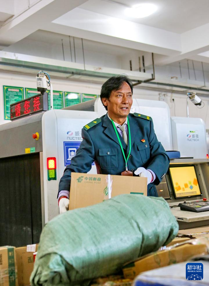 桑布在分揀郵件(2023年6月15日攝)。新華社發(fā)(倉(cāng)央群旦攝)