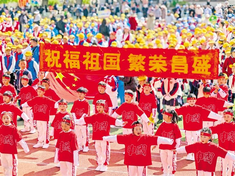 拉薩市第一小學(xué)學(xué)生在運(yùn)動(dòng)會(huì)上表演節(jié)目。朱穎 攝