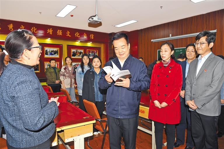 調(diào)研中,王君正指出,師范院校承擔著為中小學培養(yǎng)師資的重任,責任艱巨、使命光榮。要堅持正確辦學方向,自覺用習近平新時代中國特色社會主義思想指導學校建設辦學實踐,堅持不懈用馬克思主義中國化最新成果武裝廣大師生頭腦。堅持立德樹人根本任務,圍繞為黨育人、為國育才,遵循教育規(guī)律和人才成長規(guī)律,努力培養(yǎng)德智體美勞全面發(fā)展的社會主義建設者和接班人。進一步加強師范教育體系建設,聚焦經(jīng)濟社會發(fā)展新任務,積極推進師范教育教學改革,突出需求導向,促進教育鏈與人才鏈、產(chǎn)業(yè)鏈、創(chuàng)新鏈深度融合,提高辦學質(zhì)量和辦學效益。高度重視教師隊伍建設,把師德師風建設擺在首要位置,提高教師培養(yǎng)培訓質(zhì)量,培養(yǎng)造就一支師德高尚、業(yè)務精湛、結構合理的高素質(zhì)專業(yè)化教師隊伍。