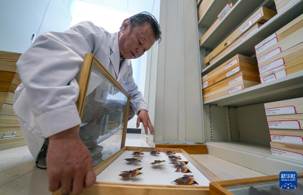 達娃在位于拉薩的西藏自治區(qū)高原生物研究所展示館藏的蝴蝶標(biāo)本(4月22日攝)。新華社記者 晉美多吉 攝