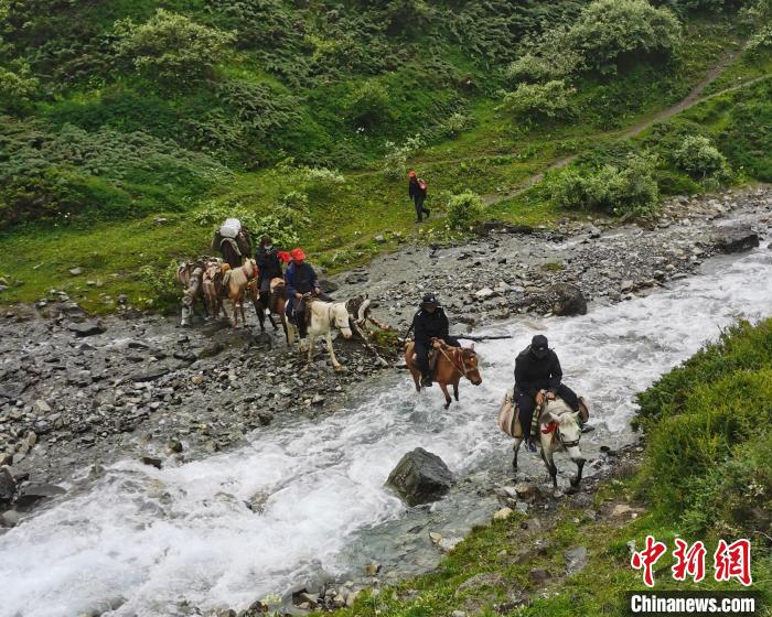 圖為貢當(dāng)邊境派出所民警為“蟲草季”護(hù)航。日喀則邊境管理支隊(duì)供圖