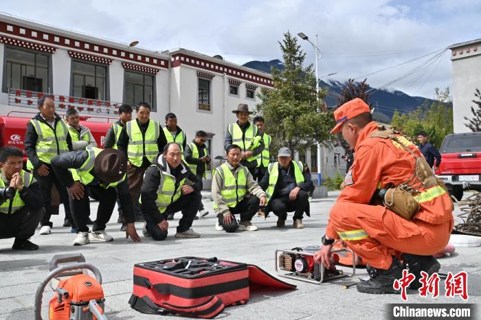 圖為森林消防隊(duì)員正在向護(hù)林員講解裝備知識。西繞拉翁 攝