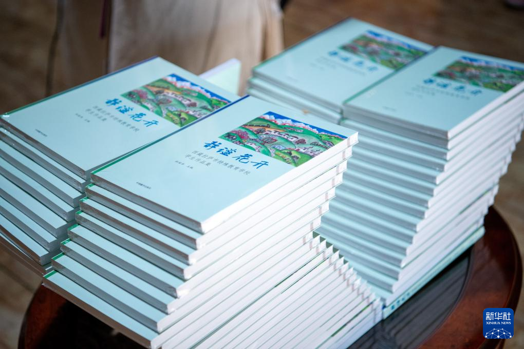 6月5日,拉薩市特殊教育學(xué)校的孩子們?cè)谛聲l(fā)布現(xiàn)場展示書籍。新華社記者 姜帆 攝