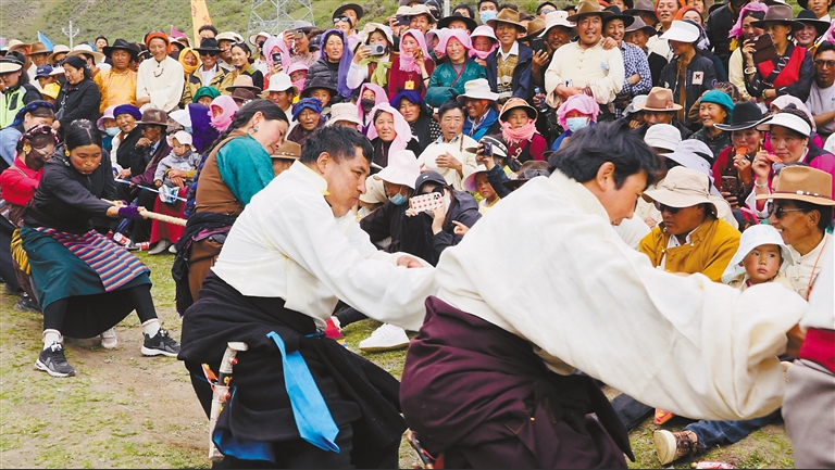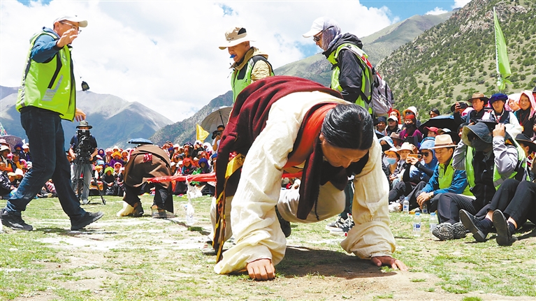“‘繽紛四季·多彩林周’活動(dòng)內(nèi)容實(shí)在是太豐富了,我們沿途觀賞到了美景,而且還體驗(yàn)了西藏民俗風(fēng)情,現(xiàn)場(chǎng)看到村民們擠牦牛奶、手工制作奶制品、指尖技藝制作酥油花等。讓我們感到震驚的是藏族大哥、大姐的力氣真是太大了,能用繩子拉動(dòng)越野車,扛起百斤重的石頭,給我們帶來(lái)了滿滿的視覺(jué)盛宴。我是第三次進(jìn)藏,這次的收獲最多,讓我體驗(yàn)到了不一樣的西藏?!眮?lái)自北京的游客張先生興奮地說(shuō)。