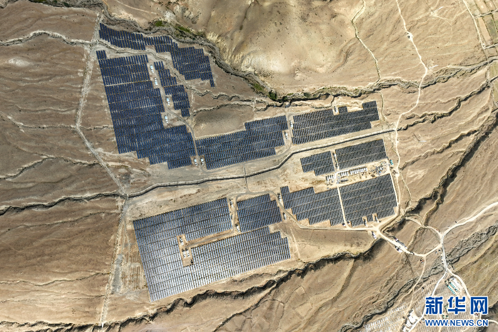 措美縣縣城附近的光伏電站(無人機(jī)照片)。新華網(wǎng) 旦增努布 攝