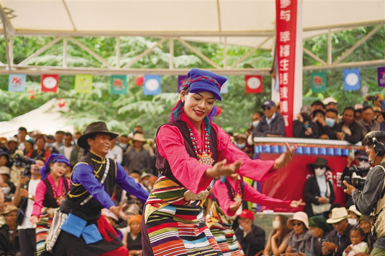 從傳統(tǒng)民族舞到現(xiàn)代創(chuàng)新舞,每支舞蹈都蘊含著藏族人民對家鄉(xiāng)的熱愛和對美好生活的向往。比賽中,參賽人員身著特色民族服飾,伴隨著優(yōu)美激昂的旋律,踩著歡快的節(jié)拍,以飽滿的熱情和精湛的舞技,演繹了一場精彩而富有特色地域文化的廣場舞盛宴,凸顯了非物質(zhì)文化遺產(chǎn)的傳承創(chuàng)新發(fā)展。