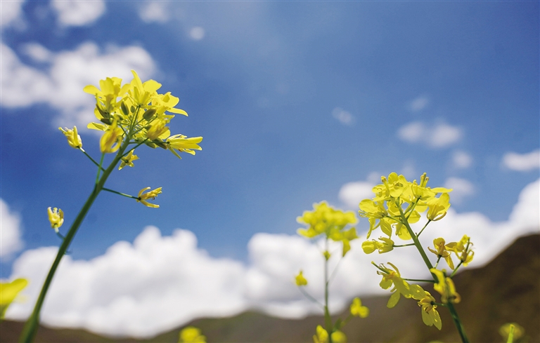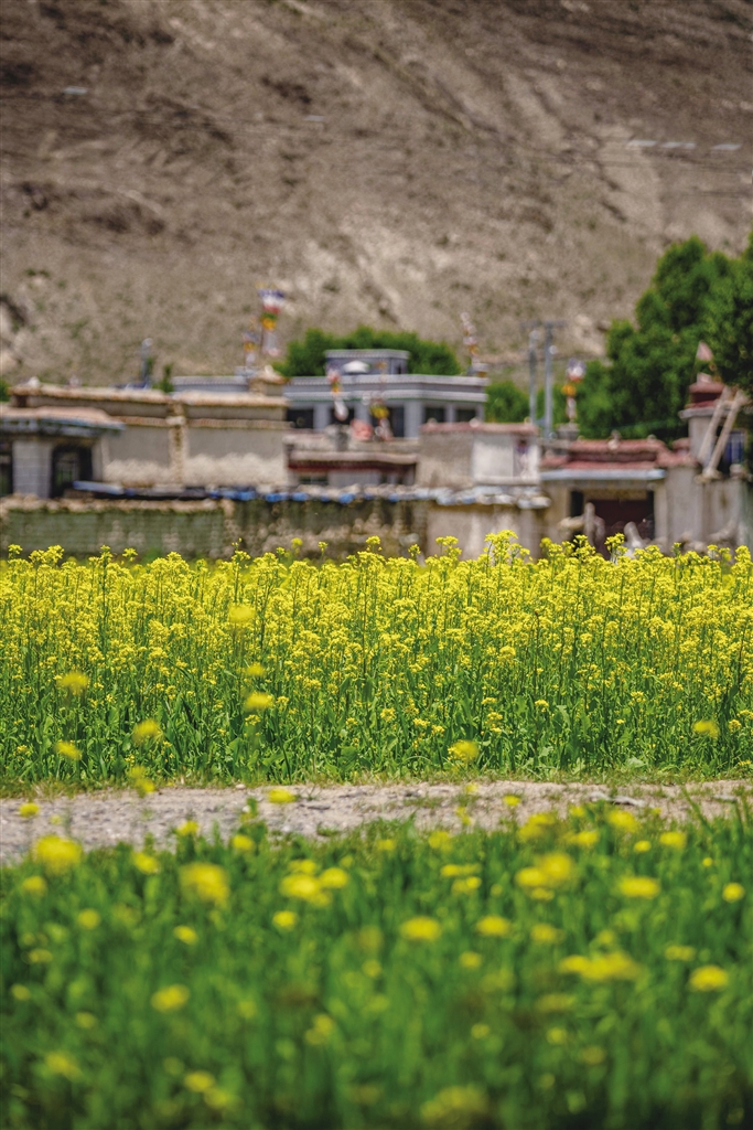 西藏的春天可以欣賞桃花,夏天可以欣賞什么花?那當(dāng)然是油菜花。近期,西藏各地迎來(lái)了油菜花盛開的季節(jié)。行走在夏日的農(nóng)田里,金黃色的油菜花給綠意盎然的農(nóng)田增添了幾分色彩。放眼望去,在藍(lán)天白云的映襯下,油菜花海如同金黃色的毯子般鋪展開來(lái),花海在微風(fēng)中輕聲搖曳,與一旁的道路、錯(cuò)落有致的村居共同構(gòu)成了一幅和諧美麗的田園風(fēng)景圖。