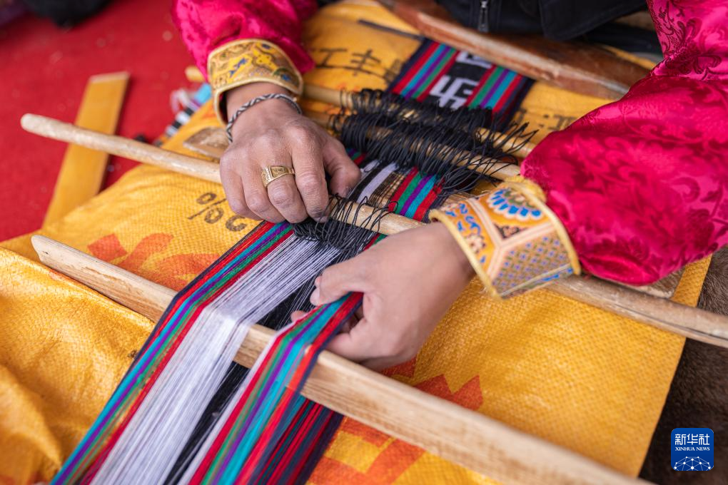 在那曲市雙湖縣,農牧民選手邊曲在參加手工編織技藝比賽(6月20日攝)。新華社記者 丁增尼達 攝