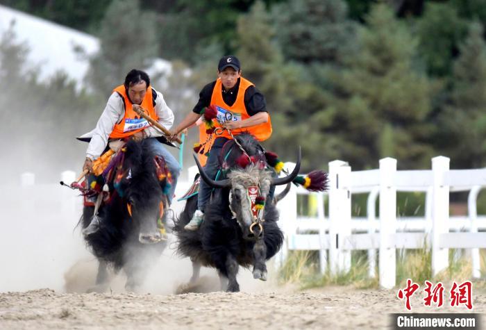 牦牛被譽為“高原之舟”,賽牦牛是藏族的傳統(tǒng)體育項目。6月23日,拉薩首屆農(nóng)牧民運動會上的賽牦牛比賽,騎手們驅(qū)牛疾馳。圖為賽牦牛預賽比賽現(xiàn)場。中新社記者 李林 攝