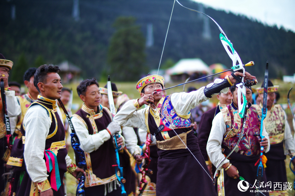 工布牧歌旅游文化節(jié)上,當?shù)卮迕裾趨⒓由浼荣悺H嗣袢請笥浾?瓊達卓嘎攝