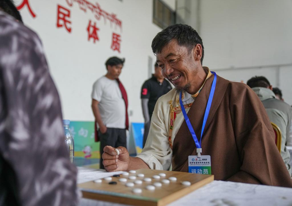 6月24日,曲水隊選手尼瑪達(dá)瓦在藏棋比賽中。新華社記者 晉美多吉 攝