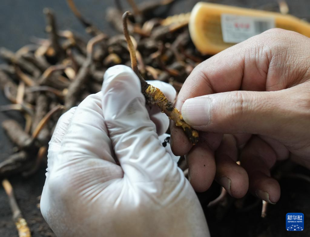 5月31日,在西藏拉薩市,藏族青年羅拉在公司內(nèi)清潔新鮮蟲(chóng)草。新華社記者 丁汀 攝