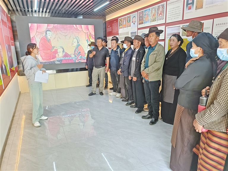 謝軍成和柏林村黨員一起參觀民族團(tuán)結(jié)展覽。