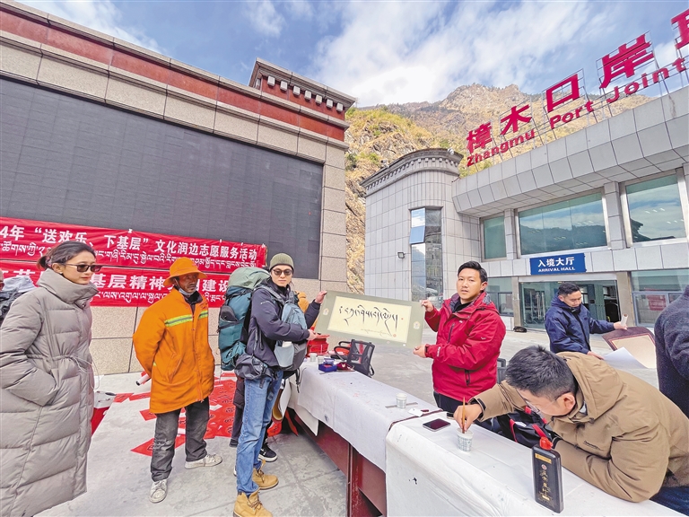 圖為日喀則市文聯(lián)在樟木口岸舉行送新春祝福活動(dòng)。