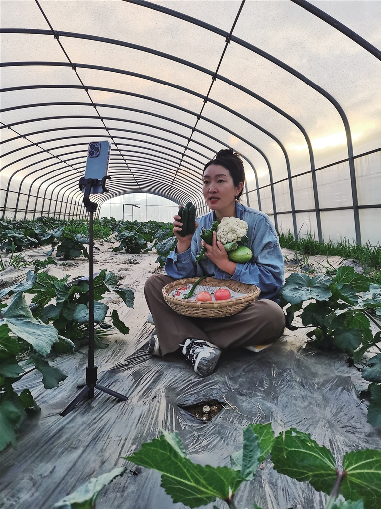阿佳旺姆把直播間設(shè)在菜地里。
