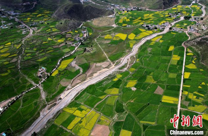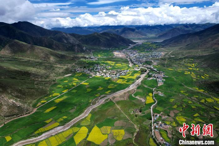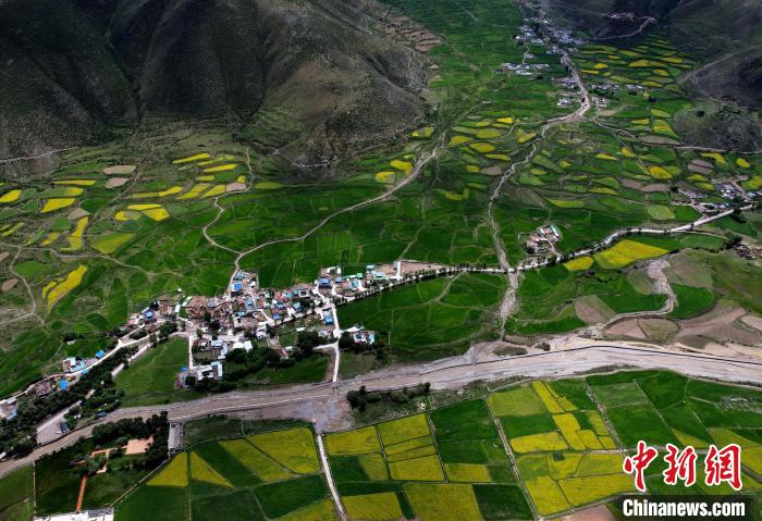 圖為7月10日,拉薩市墨竹工卡縣油菜花盛放。(無人機照片)中新社記者 李林 攝