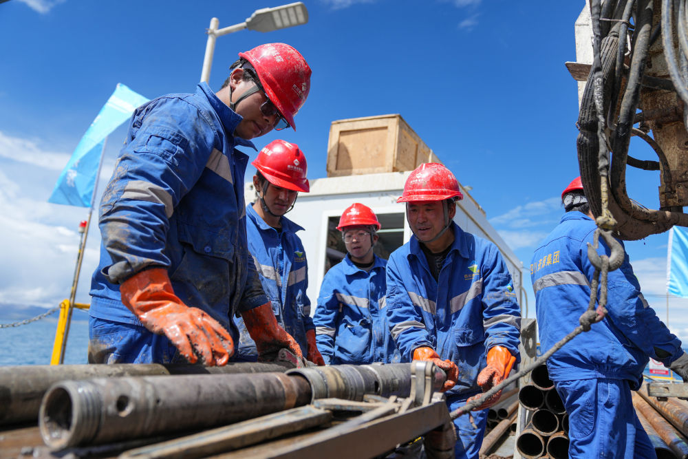 在海拔超過(guò)4700米的西藏納木錯(cuò)中心湖區(qū),21名來(lái)自五湖四海的鉆探專業(yè)技術(shù)人員,全天24小時(shí)輪班奮戰(zhàn)在面積僅200平方米的水上鉆探平臺(tái)上,協(xié)助第二次青藏科考科研人員提取湖泊巖芯樣品,這些樣本如同寶貝一樣,封存著青藏高原納木錯(cuò)地區(qū)百萬(wàn)年來(lái)的環(huán)境氣候變化信息。 擔(dān)任這次湖泊巖芯鉆探任務(wù)的是四川資源集團(tuán)華鋒鉆探隊(duì)。他們從5月31日入駐科考營(yíng)地、6月6日鉆取第一批湖泊巖芯樣品以來(lái)一直奮戰(zhàn)至今。這群平均年齡31歲的鉆探隊(duì)員常年工作在高海拔地區(qū),有著豐富的鉆探經(jīng)驗(yàn),此次鉆探是他們第一次進(jìn)行高海拔湖泊鉆探。目前納木錯(cuò)鉆探深度突破400米,達(dá)到國(guó)內(nèi)高海拔深水大湖的鉆探新紀(jì)錄。這些鉆探隊(duì)員在見證奇跡,也在創(chuàng)造歷史。