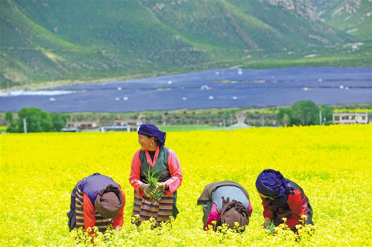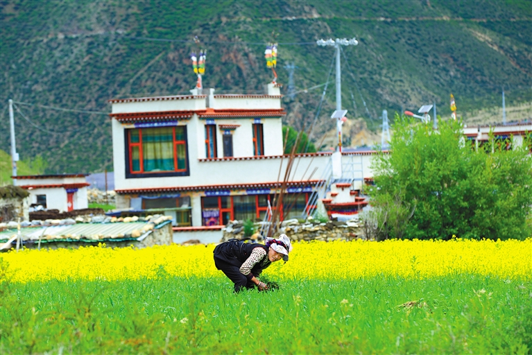 墨竹工卡縣扎雪鄉(xiāng)龍珠崗村村民在田間勞作。