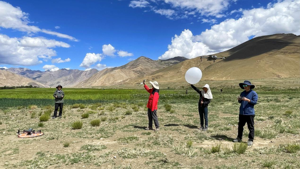 團(tuán)隊(duì)開展探空氣球大氣廓線觀測(cè)和無(wú)人機(jī)熱紅外影像獲取。(中國(guó)科學(xué)院空天信息創(chuàng)新研究院供圖)