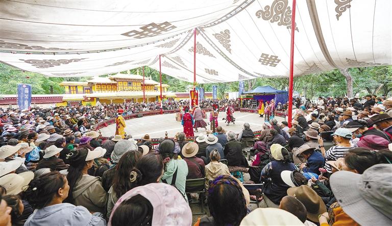 上圖:8月8日,市民群眾在羅布林卡觀看藏戲。
