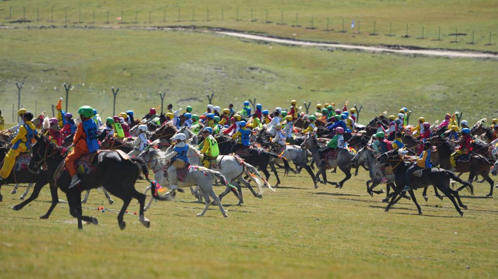 8月12日,上百匹賽馬在10公里傳統(tǒng)大跑項(xiàng)目中角逐。新華社記者晉美多吉攝