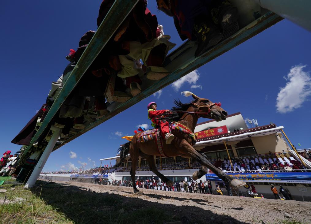 藏北牧民有多愛馬?每匹駿馬都裝飾著精致多彩的綢緞或毛毯,鬃毛和尾巴也梳起俊美的發(fā)辮;為避免用力時(shí)弄痛馬兒,一些小騎手脫去運(yùn)動鞋,跨上馬鞍時(shí)只穿襪子。
