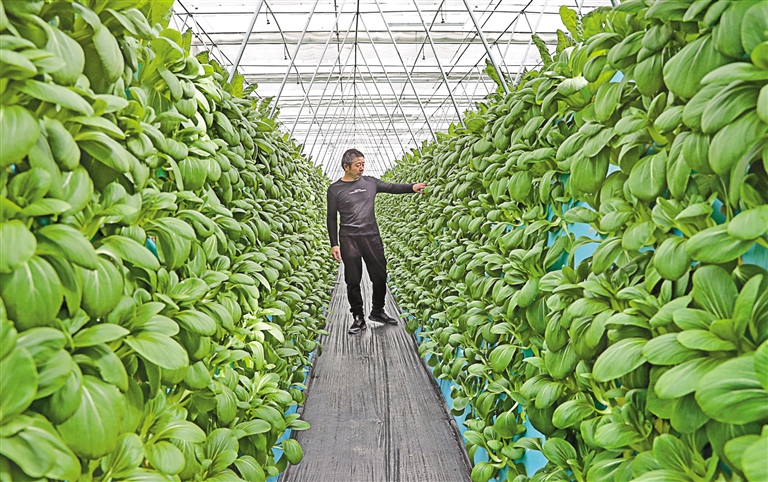 圖為那曲市浙江產(chǎn)業(yè)援藏精準扶貧示范基地的工作人員查看氣霧栽培蔬菜的長勢。記者 次旺 攝