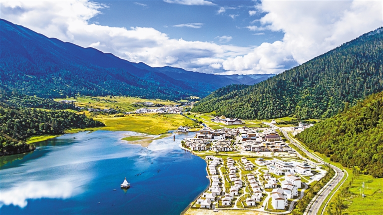 圖為廣東省對口支援建設(shè)的林芝市巴宜區(qū)魯朗國際旅游小鎮(zhèn)。(圖片由林芝市魯朗景區(qū)管理委員會提供)
