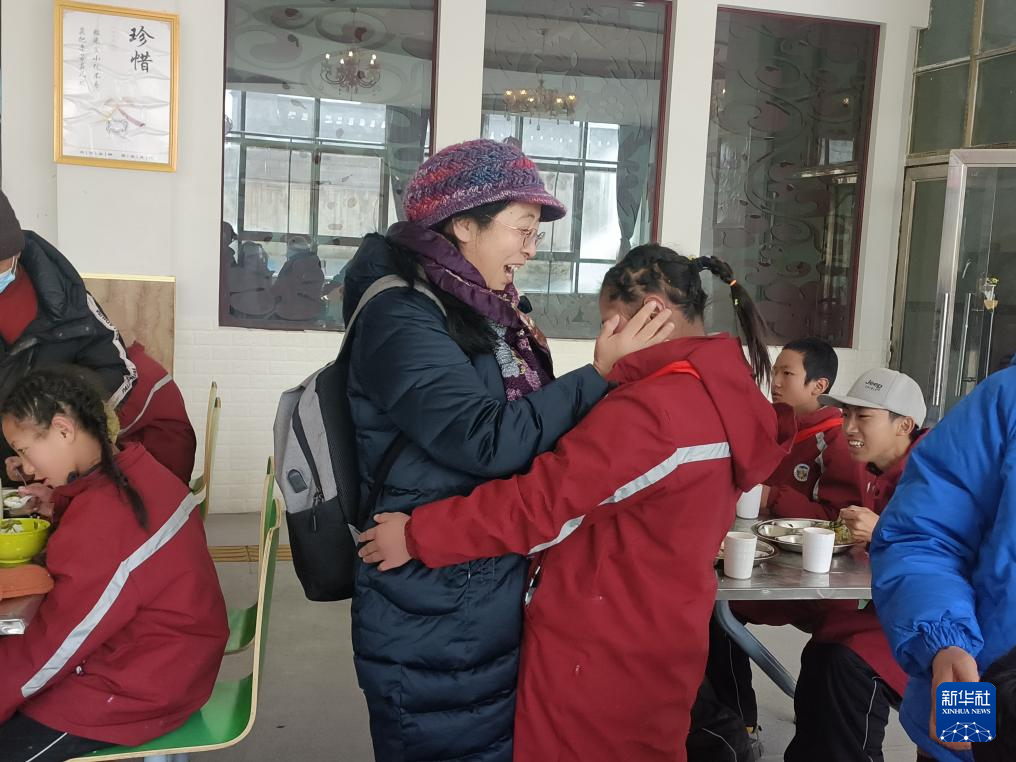 那曲市特殊教育學校的食堂里,次仁拉姆校長和提前返校的學生見面(8月23日攝)。新華社發(fā)(白瑪朗杰攝)