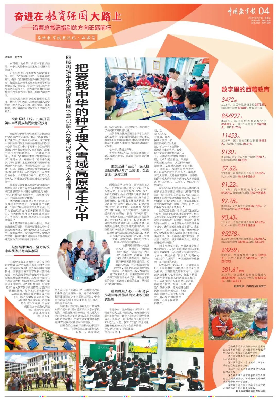 習(xí)近平總書記高度重視西藏教育工作,指出“改變藏區(qū)面貌,根本要靠教育”,強(qiáng)調(diào)“要重視加強(qiáng)學(xué)校思想政治教育,把愛國主義精神貫穿各級各類學(xué)校教育全過程,把愛我中華的種子埋入每個青少年的心靈深處”。這為做好新時代西藏教育工作提供了根本遵循、指明了前進(jìn)方向。