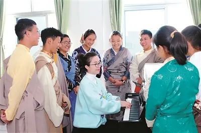 拉薩師范高等??茖W(xué)校學(xué)生在校園演奏民樂。