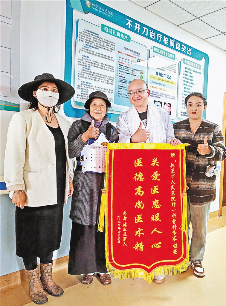 圖為患者康復(fù)后為援藏醫(yī)生贈送錦旗表達感謝。(圖片由林芝市人民醫(yī)院提供)