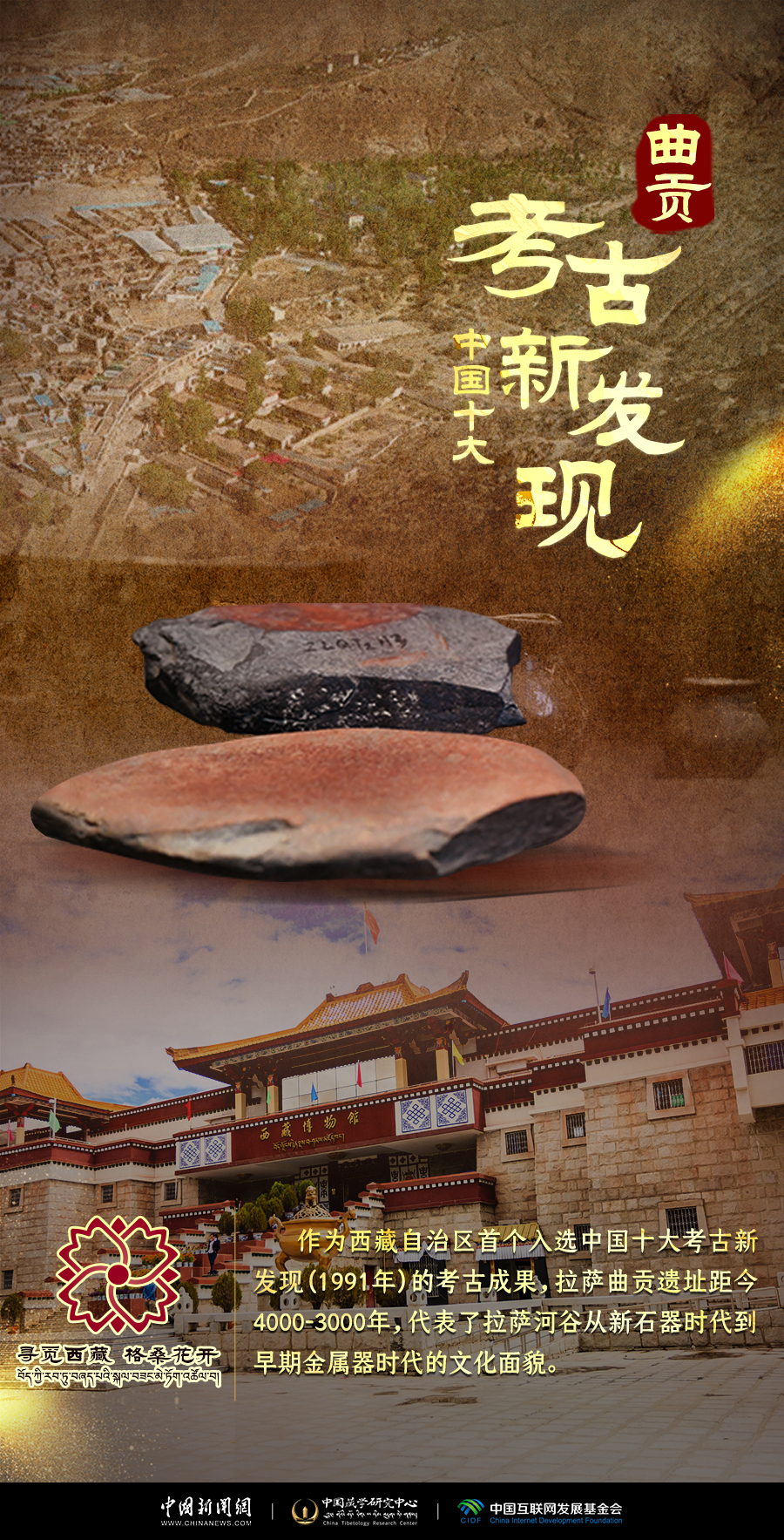 卡若遺址距今約5000年左右,第一次將西藏高原史前人類生存活動(dòng)的科學(xué)證據(jù)揭露于世。2021年10月,西藏昌都卡若遺址入選中國“百年百大考古發(fā)現(xiàn)”。曲貢遺址位于拉薩市北郊,距市區(qū)約五公里,是迄今在西藏發(fā)現(xiàn)的海拔最高、面積最大,文化層堆積較厚,文化內(nèi)涵極其豐富的遺址之一,被譽(yù)為拉薩的“半坡”。它們勾勒出青藏高原的文明年輪。